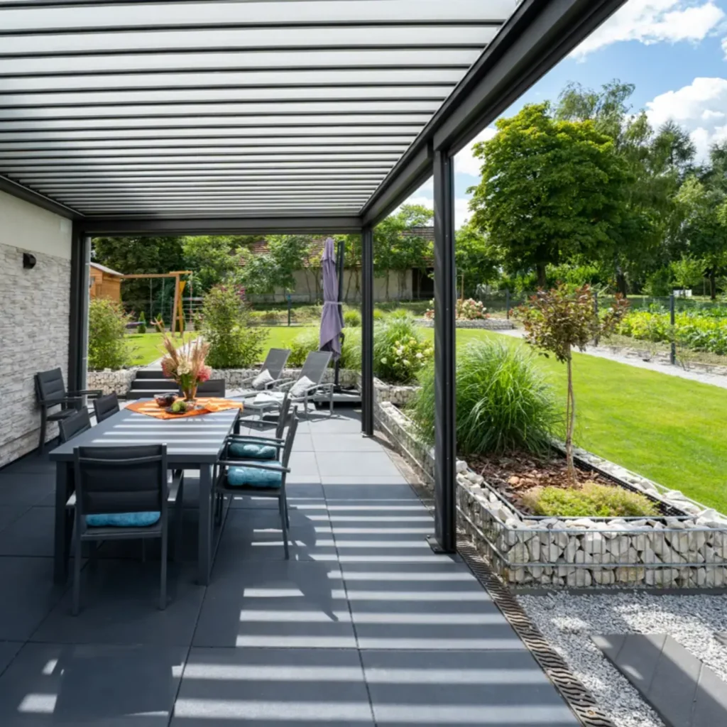 Bioklimatikus, motoros lamellás pergola